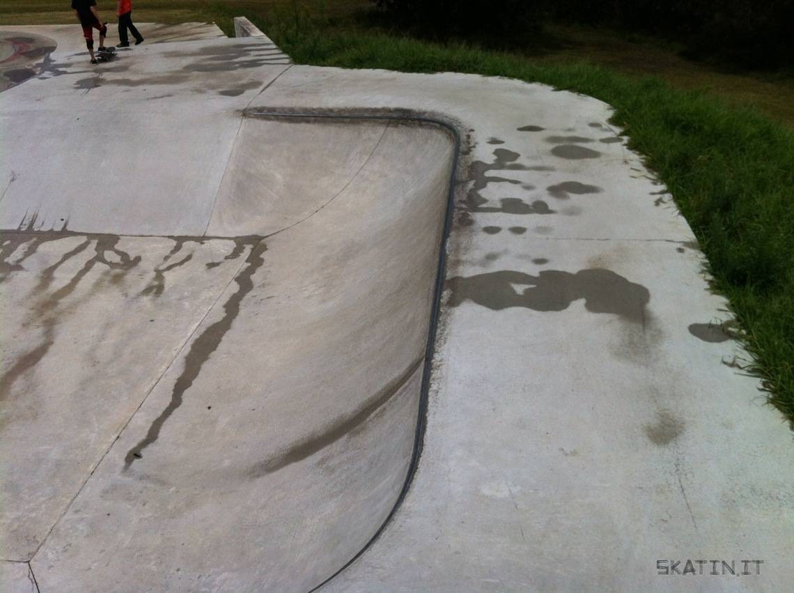 Medium bow twist and turns with a really interesting shape and goes from 4-7ft gradually as it winds around the bend. The shallow end has an open rounded. Solid coping throughout and again really good transitions.
