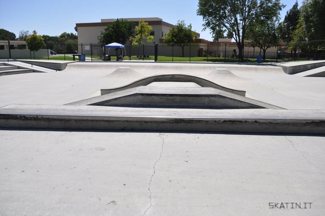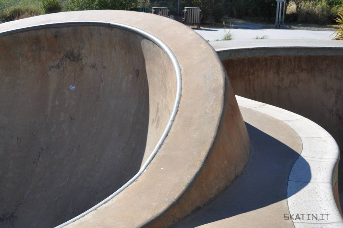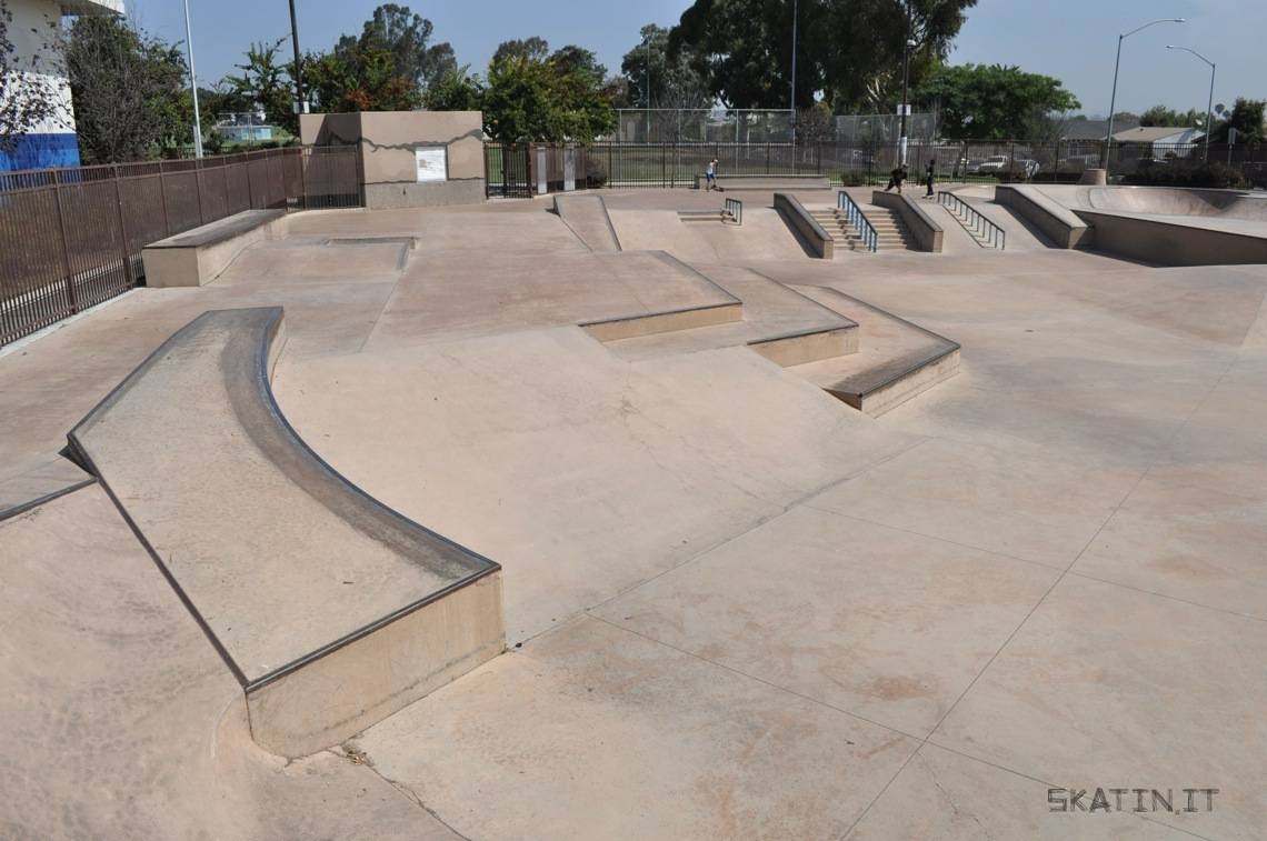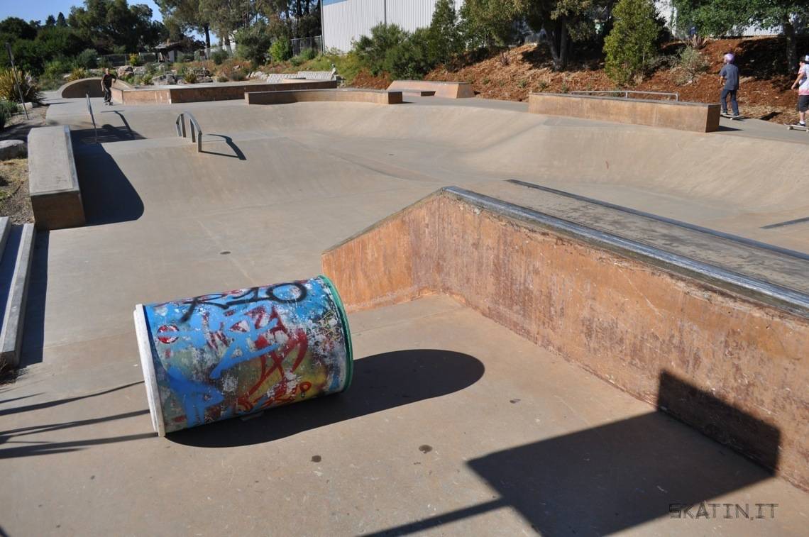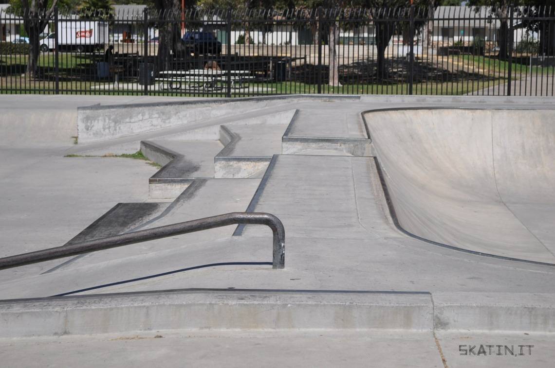 An odd little suburban skatepark sitting right alongside the 5 in North San Diego. I say odd as it looks like they either forgot to build half of the park, or they just ran out of funding part way through the construction. (update: in fact the skatepark used to feature a bunch of wooden minis and transitions that have since been removed… which explains why its felt so half done).