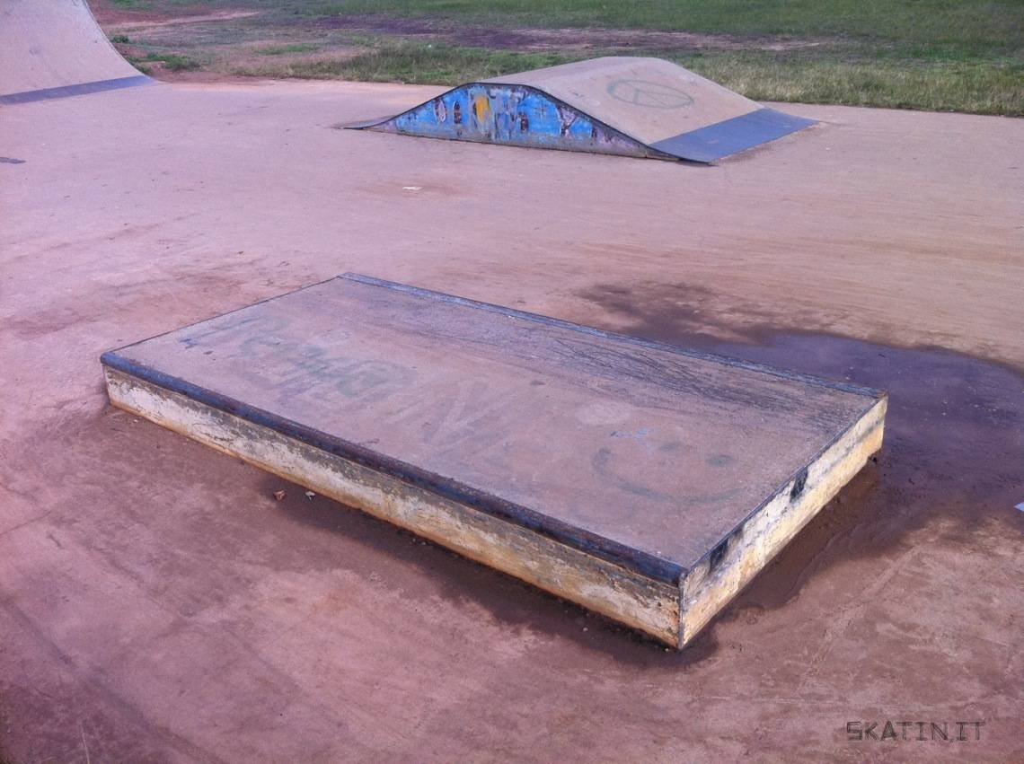 Skatepark No 1 is the older one that is essentially un-skatable due to the pebbled tar surface that the quarters/banks have been plonked on. Its probably usable for a BMX, but only just. The park features one very basic quarter, two very basic banks and a ‘fun’ box. They all stand at around 3.5ft high.