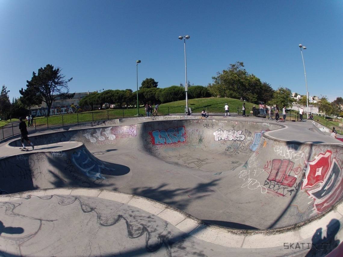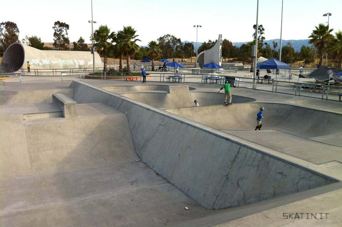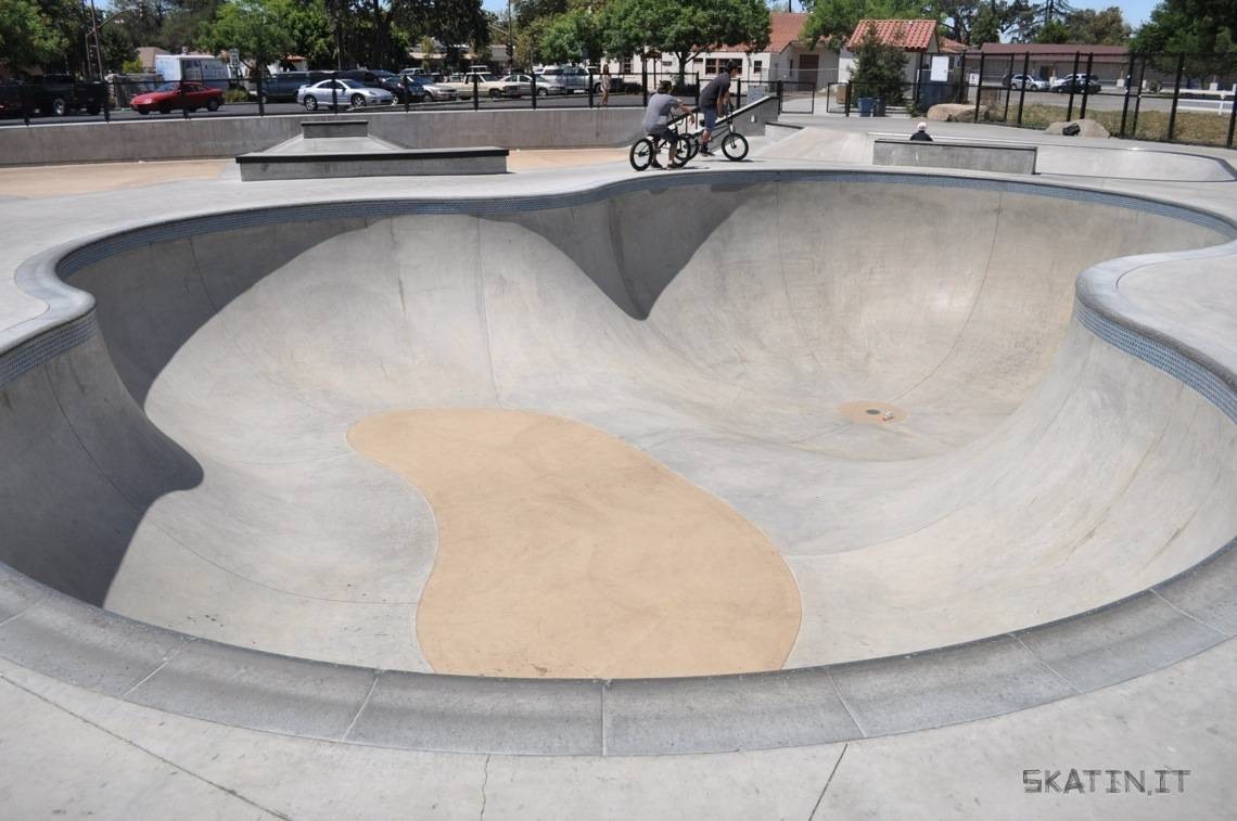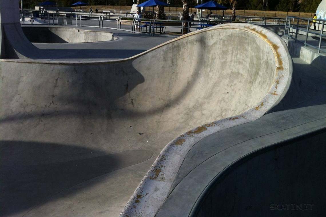 Massive open shaped bowl plus a pool. Super fast and lighted beautifully. Big exits. Fenced hours. Pool. Parking.