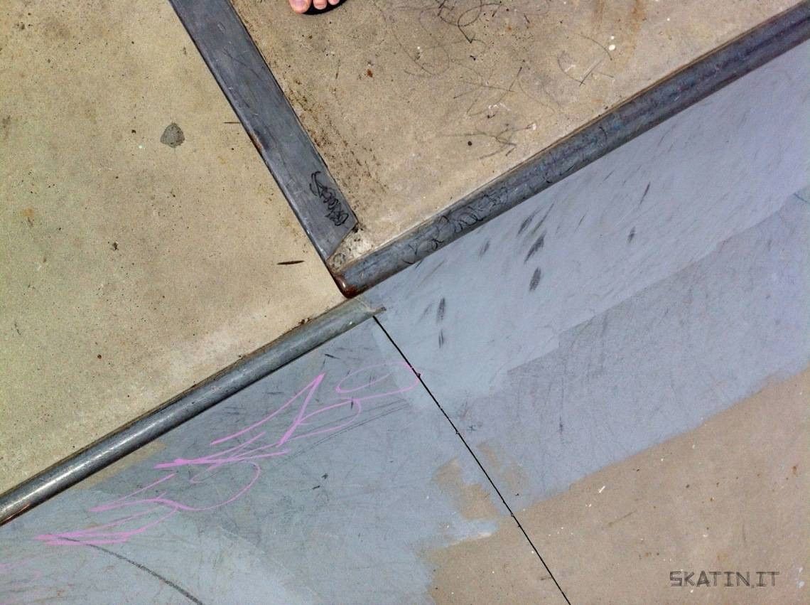 The main 6ft bowl tapers down to an open shallow end at around 4ft and has a nice transition and mid size coping. Lots of fun on this one. The adjoining street course is relatively simple but features a cracking little curved, tapered transition just as you exit the main bowl thats complete with dual coping (small spine). At the other end a series of 5-6ft banks (one extended transition) lead to a central area that has a couple of interesting funboxes as well as some rails, blocks and hubba’s. There’s plenty of lines to be had here just doing end to end tricks and dipping into the bowl occasionally. The surface is in pretty good condition and fast enough, and all the coping and edging is a little worn and slow but otherwise ok.