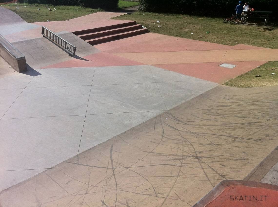 Surface is in good condition and pretty fast. All the coping and rails are very good of a little slow in parts. Design is really good with excellent bowl shapes and and really interesting extensions and winding coping.