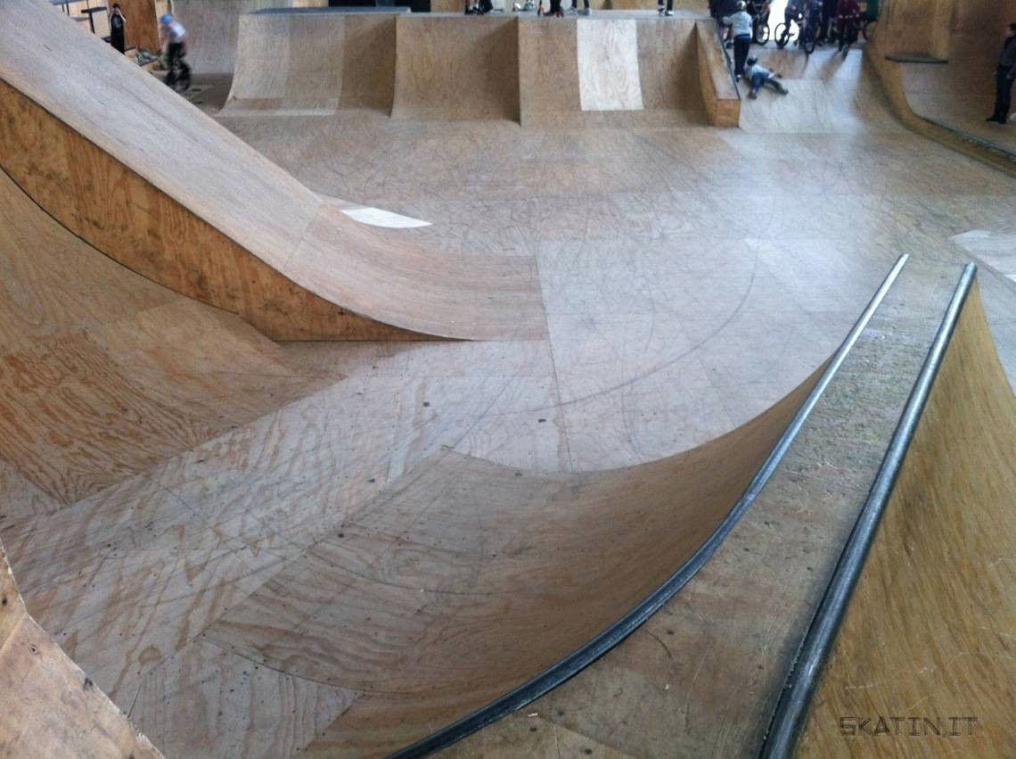 Its a fairly solid park and great in the wet weather, but its certainly not for the faint at heart. Most of the ramps are big, the coping is chunky and the plywood surface takes a little getting used to. The design is OK and you can carve out some decent lines, but the surface is a little slow. Rampfest is heavily dominated by BMX’rs and scooter kids who whiz about with little care, it can get chaotic and skaters need to be very aware of whats going on around you or you can get nailed.