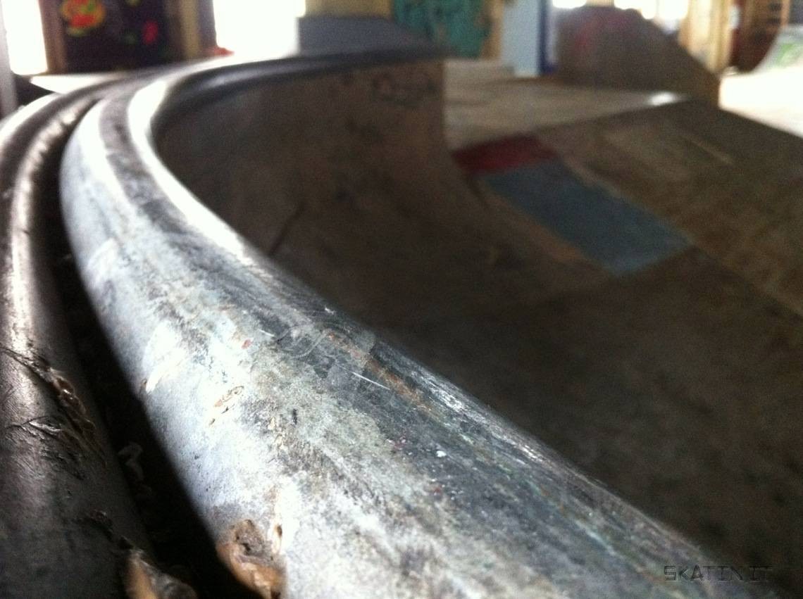 The surface is smooth and fast, the transitions kind of small and tight and the coping mid sized and slightly warped in places.